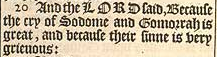 20 And the LORD said, Because the cry of Sodome and Gomorrah is great, and because their sinne is very grieuous: