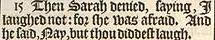 15 Then Sarah denied, saying, I laughed not: for she was afraid. And he said, Nay, but thou diddest laugh.