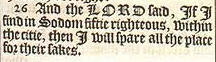 26 And the LORD said, If I find in Sodom fiftie righteous, within the citie, then I will spare all the place for their sakes.