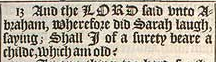13 And the LORD said vnto Abraham, Wherefore did Sarah laugh, saying; Shall I of a surety beare a childe, which am old?