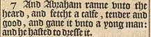 7 And Abraham ranne vnto the heard, and fetcht a calfe, tender and good, and gaue it vnto a yong man: and he hasted to dresse it.