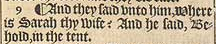 9 ¶ And they said vnto him, Where is Sarah thy wife? And he said, Behold, in the tent.