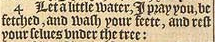 4 Let a little water, I pray you, be fetched, and wash your feete, and rest your selues vnder the tree: