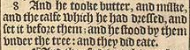 8 And he tooke butter, and milke, and the calfe which he had dressed, and set it before them; and he stood by them vnder the tree: and they did eate.