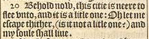 20 Behold now, this citie is neere to flee vnto, and it is a litle one: Oh let me escape thither, (is it not a litle one?) and my soule shall liue.