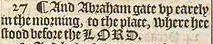 27 ¶ And Abraham gate vp earely in the morning, to the place, where hee stood before the LORD.