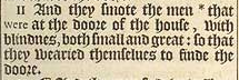 11 And they smote the men *that were at the doore of the house, with blindnes, both small and great: so that they wearied themselues to finde the doore. [ * Wisd. 19. 16.]