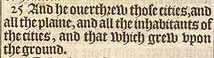 25 And he ouerthrew those cities, and all the plaine, and all the inhabitants of the cities, and that which grew vpon the ground.