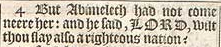 4 But Abimelech had not come neere her: and he said, LORD, wilt thou slay also a righteous nation?