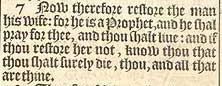 7 Nun gib darum dem Mann seine Ehefrau zurück: Denn er ist ein Prophet und er soll für dich beten und du sollst leben: Und wenn du sie nicht zurück gibst, wisse du, dass du sicherlich sterben wirst, du und alle die Deinen.