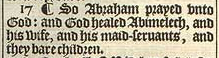 17 ¶ So Abraham prayed vnto God: and God healed Abimelech, and his wife, and his maid-seruants, and they bare children.