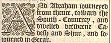 1 And Abraham iourneyed from thence, toward the South-Countrey, and dwelled betweene Cadesh and Shur, and soiourned in Gerar.