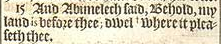 15 And Abimelech said, Behold, my land is before thee; dwel +where it pleaseth thee. [+ Heb. as is good in thine eyes.]