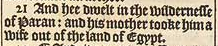 21 And hee dwelt in the wildernesse of Paran: and his mother tooke him a wife out of the land of Egypt.