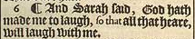 6 ¶ And Sarah said, God hath made me to laugh, so that all that heare, will laugh with me.