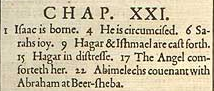 1 Isaak wird geboren. 4 Er wird beschnitten. 6 Sarahs Freude. 9 Hagar und Ismael werden verjagt. 15 Hagar im Elend. 17 Der Engel tröstet sie. 22 Abimelechs Bund mit Abraham in Beerscheba.