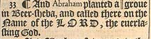33 ¶ Und Abraham pflanzte einen ||Hain in Beerscheba und rief dort den Namen des HERRN an, des ewigen Gottes.[||oder: Baum]