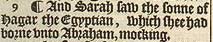 9 ¶ And Sarah saw the sonne of Hagar the Egyptian, which shee had borne vnto Abraham, mocking.
