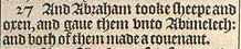 27 And Abraham tooke sheepe and oxen, and gaue them vnto Abimelech: and both of them made a couenant.