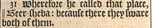 31 Weshalb er den Ort ||Beerscheba nannte: Denn dort schworen sie beide. [||Das ist: Der Brunnen des anderen]