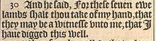 30 Und er sagte “Nimm diese sieben Mutterschafe aus meiner Hand, als meine Zeugen, dass ich diesen Brunnen gegraben hatte.”