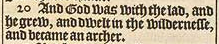 20 And God was with the lad, and he grew, and dwelt in the wildernesse, and became an archer.