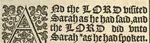 1 And the LORD visited Sarah as he had said, and the LORD did vnto Sarah *as he had spoken. [ *Chap.17. 19. and 18. 10. ]