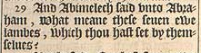 29 And Abimelech said vnto Abraham, What meane these seuen ewe lambes, which thou hast set by themselues?