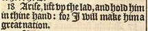 18 Arise, lift vp the lad, and hold him in thine hand: for I will make him a great nation.