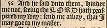 56 And he said vnto them, Hinder me not, seeing the LORD hath prospered my way: send me away, that I may goe to my master.