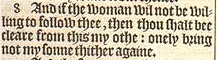 8 And if the woman wil not be willing to follow thee, then thou shalt bee cleare from this my othe: onely bring not my sonne thither againe.