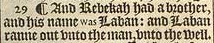 29 ¶ And Rebekah had a brother, and his name was Laban: and Laban ranne out vnto the man, vnto the well.