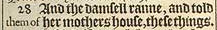 28 And the damsell ranne, and told them of her mothers house, these things.