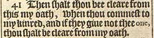 41 Then shalt thou bee cleare from this my oath, when thou commest to my kinred, and if they giue not thee one, thou shalt be cleare from my oath.