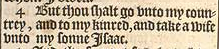4 But thou shalt go vnto my countrey, and to my kinred, and take a wife vnto my sonne Isaac.