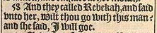 58 And they called Rebekah, and said vnto her, Wilt thou go with this man? and she said, I will goe.