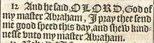 12 And he said, O LORD, God of my master Abraham, I pray thee send me good speed this day, and shew kindnesse vnto my master Abraham.