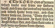 7 Der HERR, Gott des Himmels, der mich aus dem Haus meines Vaters nahm, und aus dem Land meiner Verwandten un der zu mir sprach und zu mir schwor ‘Deiner Nachkommenschaft will ich dieses Land geben’, er wird seinen Engel zu dir senden und du sollst von dort eine Frau für meinen Sohn nehmen.[Genesis 12:7 und 13:15 und 15:18 und 26:4]