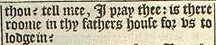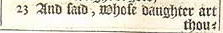 23 And said, whose daughter art thou? tell mee, I pray thee: is there roome in thy fathers house for vs to lodge in?