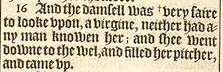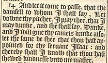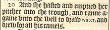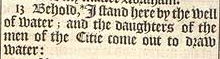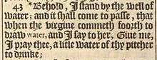 43 *Behold, I stand by the well of water; and it shall come to passe, that when the virgine commeth foorth to draw water, and I say to her, Giue me, I pray thee, a litle water of thy pitcher to drinke;[ * Verse 13. ]