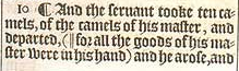 10 ¶ And the seruant tooke ten camels, of the camels of his master, and departed, ( || for all the goods of his master were in his hand) and he arose, and went to Mesopotamia, vnto the citie of Nahor. [ || Or, And ]