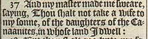 37 And my master made me sweare, saying, Thou shalt not take a wife to my sonne, of the daughters of the Canaanites, in whose land I dwell:
