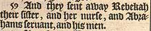 59 And they sent away Rebekah their sister, and her nurse, and Abrahams seruant, and his men.