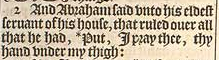 2 And Abraham said vnto his eldest seruant of his house, that ruled ouer all that he had, *Put, I pray thee, thy hand vnder my thigh: [*Chap. 47. 29. ]