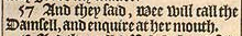 57 And they said, wee will call the Damsell, and enquire at her mouth.