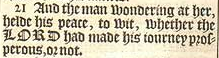 21 And the man wondering at her, helde his peace, to wit, whether the LORD had made his iourney prosperous, or not.
