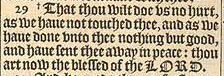 29 +That thou wilt doe vs no hurt, as we haue not touched thee, and as we haue done vnto thee nothing but good, and haue sent thee away in peace: thou art now the blessed of the LORD. [ + Heb. if thou shalt &c. ]
