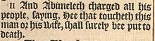 11 And Abimelech charged all his people, saying, Hee that toucheth this man or his wife, shall surely bee put to death.