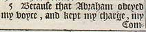 5 Because that Abraham obeyed my voyce, and kept my charge, my Commandements, my Statutes and my Lawes.