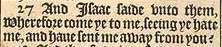 27 And Isaac saide vnto them, Wherefore come ye to me, seeing ye hate me, and haue sent me away from you?